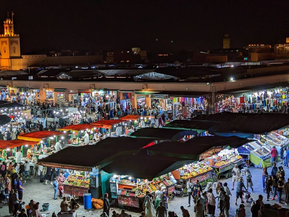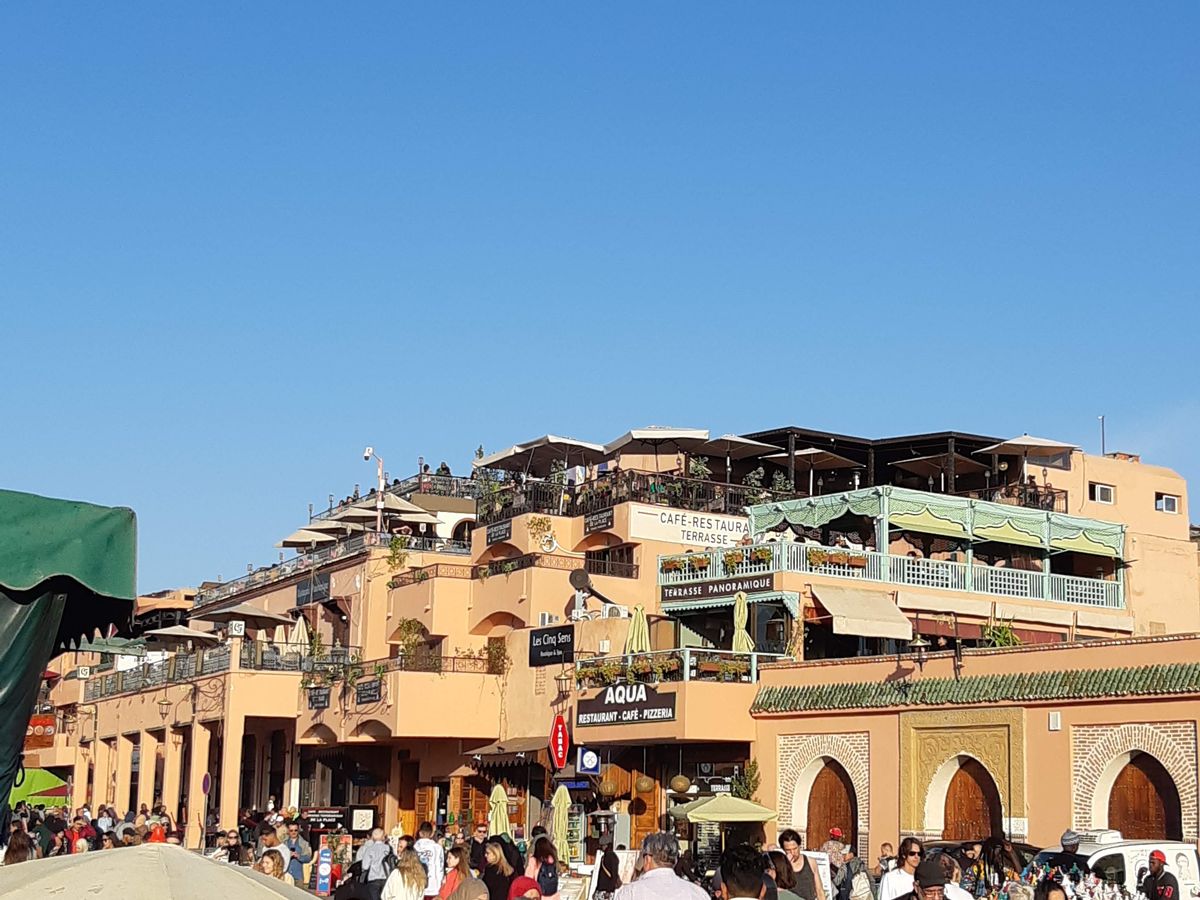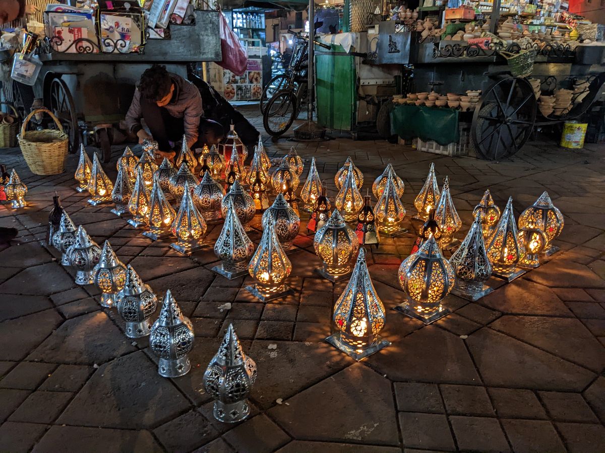 マラケシュでも時間と要望に合わせたガイドの後に良心的なお店も紹介してくれました。なんでも揃うのでお土産はここで充分。結果ハマムに行く時間もなくなり、現金が不足してATMに走りました。フナ市場は旅のフィナーレにはふさわしく夜景を一望できる穴場のカフェにも連れてってくれました。コロナ前は身動きが取れないくらいだったらしいので今がいい時期だったかも。
