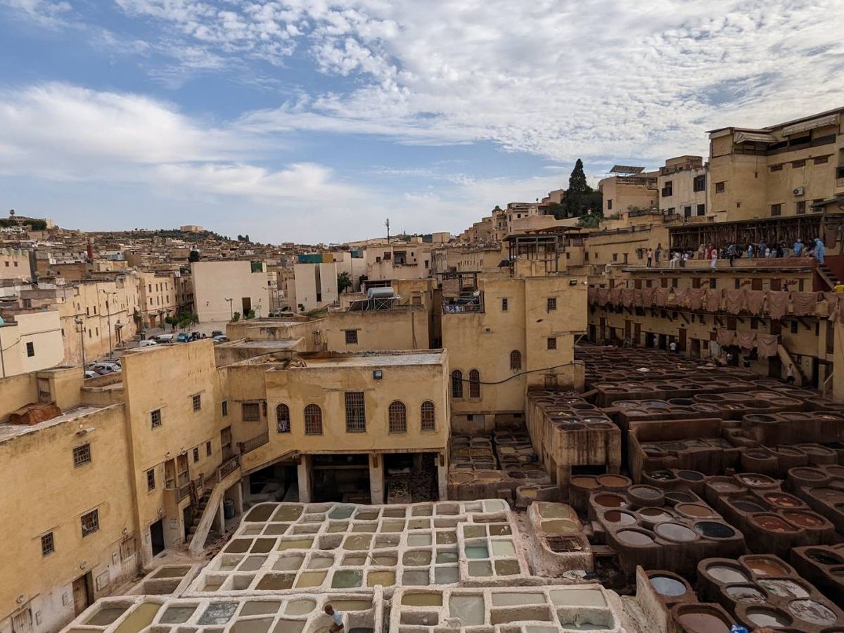フェズは夕方到着し、街全体が見える丘やモザイク工房見学しました。ホテル到着後に旧市街を歩きました。夜でも飲食店やお土産屋がやっていて、歩くだけでも楽しかったです。