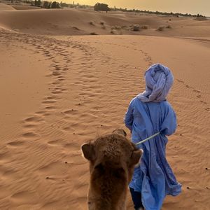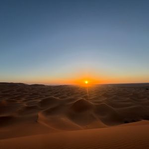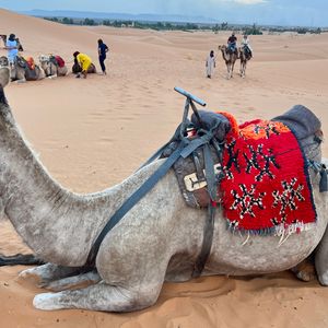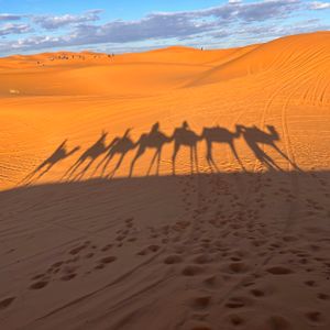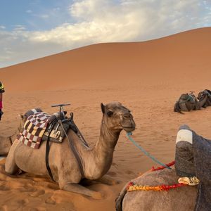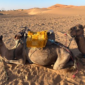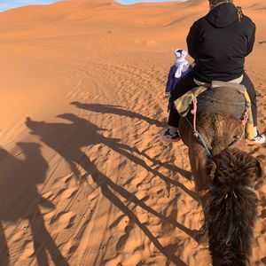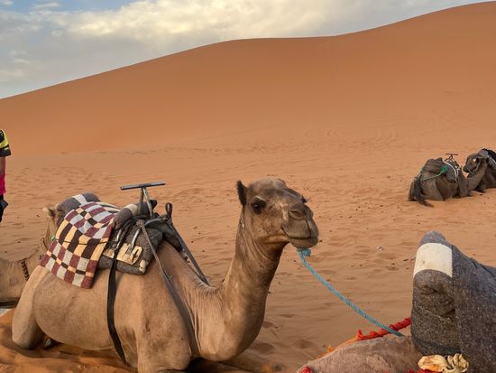 なかでも一番印象に残っているのは、サハラ砂漠でのラクダ体験です。エジプトのピラミッド周辺に比べて観光客が圧倒的に少なく、静かで落ち着いた雰囲気のなか、1時間ほどゆっくりラクダに乗れたのがとてもよかったです。夕暮れ前の砂漠を進みながら、夕日に染まっていく砂丘を眺める時間は、まさに非日常そのものでした。