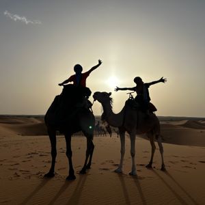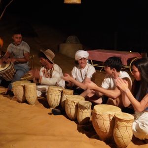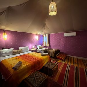 夕食時にはキャンプ場のスタッフから「翌朝、日の出に合わせてラクダに乗るか」と聞かれました。私たちは参加しませんでしたが、同じキャンプに泊まっていた日本人旅行者が朝日を見にラクダに乗ったそうなので、料金について尋ねてみたところ「チップのみで追加料金は不要だった」とのことでした。ただ、キャンプスタッフ側に料金の有無を改めて聞いても明確な答えは返ってこず、スタッフも曖昧な反応で、その点は少し分かりづらい印象でした。事前に金額や条件がはっきりしていれば、もっと気持ちよく判断できたと思います。