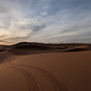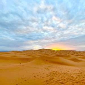 トドラ渓谷を見学した後サハラ砂漠に移動。天気はあいにくの曇り空で期待していた真っ赤に染まる砂丘や満点の星空は拝めませんでしたが、それでも大迫力の砂漠の景色を楽しむことができました。幸い朝日と朝日に染まる砂丘はわずかな時間でしたが見ることができました。