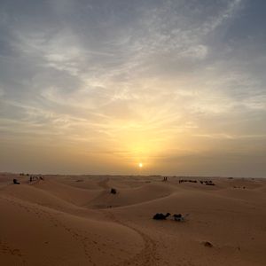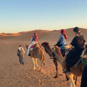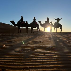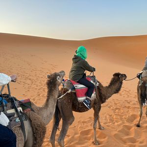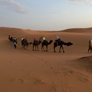 サハラ砂漠でのラクダツアーは今までに体験したことのない異世界に来たようで、景色もラクダ乗りも楽しめた。砂漠からみた夕陽はとても美しかった。テント泊は想像以上に快適で、クーラーやwifi、シャワーもついていた。スタッフの方も優しく、ご飯も美味しくいただけた。