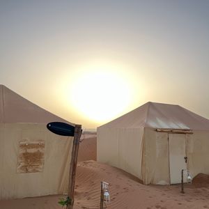 冬の早朝のラクダ乗りは手が凍えるので、滑らない手袋の持参をおすすめします。砂漠テントの共用トイレと洗面は綺麗でした。