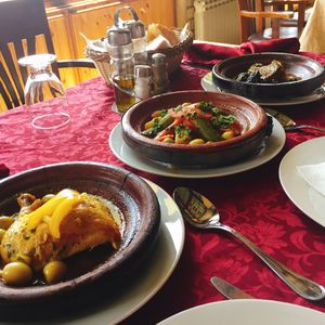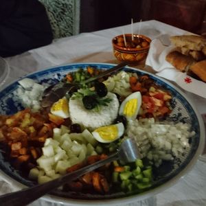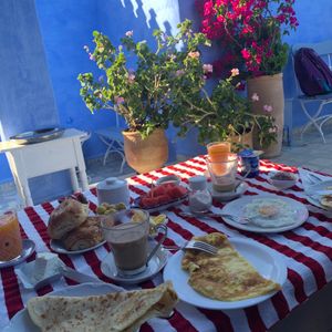 何といっても食事がおいしかったです。夕食はモロッコ風フレンチコースでワインもあります。朝食はモロッコ式でオレンジジュース・フルーツ・パン・卵料理です。