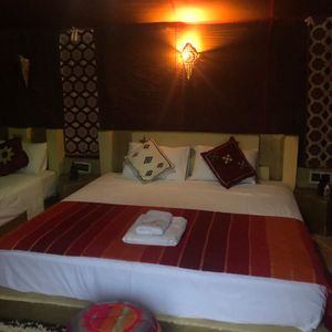 トイレ・洗面所・シャワー完備。インターネットも使えるし電源もあるので充電もできます。本当に快適でした。夕飯はレストランテントでコース式ででてきました。(サラダ、肉、タジン鍋、デザート)食べきれないほどの量で残してしまったので申し訳なかったです。