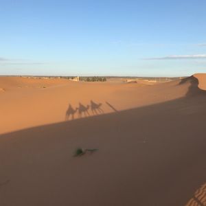 メルズーガでの砂漠体験は必須です!ラクダに跨り砂漠でのトレッキングは意外といい運動になります。翌日は全身筋肉痛でした。砂漠のサンセット、テントでの食事、キャンプファイヤーでのドラムナイト、その後夜の砂漠へ向かい明かりのない砂漠に寝転がり空を仰ぐと満天の星空はこんなに夜空に星があったのかと思わせます。