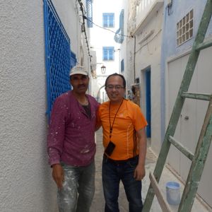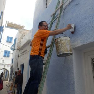 「旧市街地メディナ」では、想定外でペンキ塗りしているおじさんに声を掛けられ、「ペンキ塗りをやってみないか?」ということで、ペンキ塗りをやりました。こうした想定外のアクティビティもいい思い出になりました。