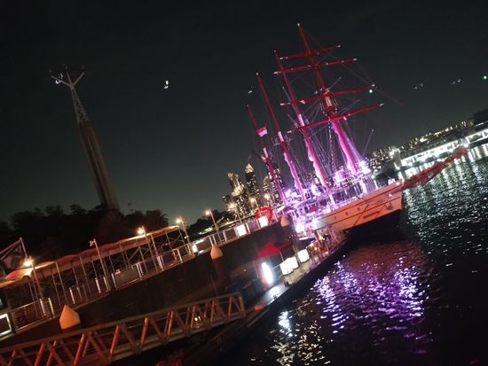 とてもフレンドリーな乗組員が印象的です。 適時声をかけてくれるし、知っている日本語も使って気を使ってくれています。 4コースディナーでの食事量も質も充分だと思います。 サプライズを用意していた方は、見回した中では8割位の方がしていたかも。 最初、雨が15分位降りましたが、船側の対応は手慣れたもので問題なく、その後は晴れたので良かったです。 マリーナベイ内には入りません。外海ですが波も他船の影響以外