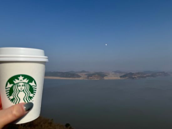 南北関係に関心があり、板門店やDMZに数回訪問したことがあります。24年にオープンしたスターバックスもとても気になっていました。 現地の方が早くからスタバ待ち?公園への入園待ち?をしていますが、このツアーのバスは早く到着するので、イートインの席も確保できる余裕がありました。外の写真が撮りたかったので私はテイクアウトにしました。 またこちらのスタバ限定グッズ(特にマグカップ)はすぐ売り切れるので、入