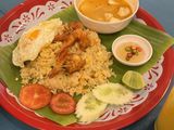 その後エレファントビレッジではじめて象に乗り、古のタイの気分を味わいました。昼食はチャーハンとマンゴージュース。