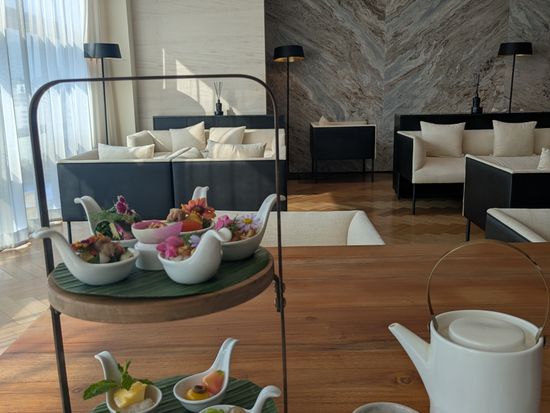 シグネチャーマッサージに、オプションで温泉とアフタヌーンティを付けました。 マッサージを13時30分に予約したところ、バウチャーに12時までに行く様にとありましたが、温泉にゆっくり入りたかったので11時頃行きました。薄茶色の硫黄の香りはしない「草津温泉」やソーダ水、寝湯のジャグジー、水風呂などの広い湯船に、ドライサウナ、スチームサウナがありました。入口にレモンとキュウリが浮かんだ水と紙コップがあり