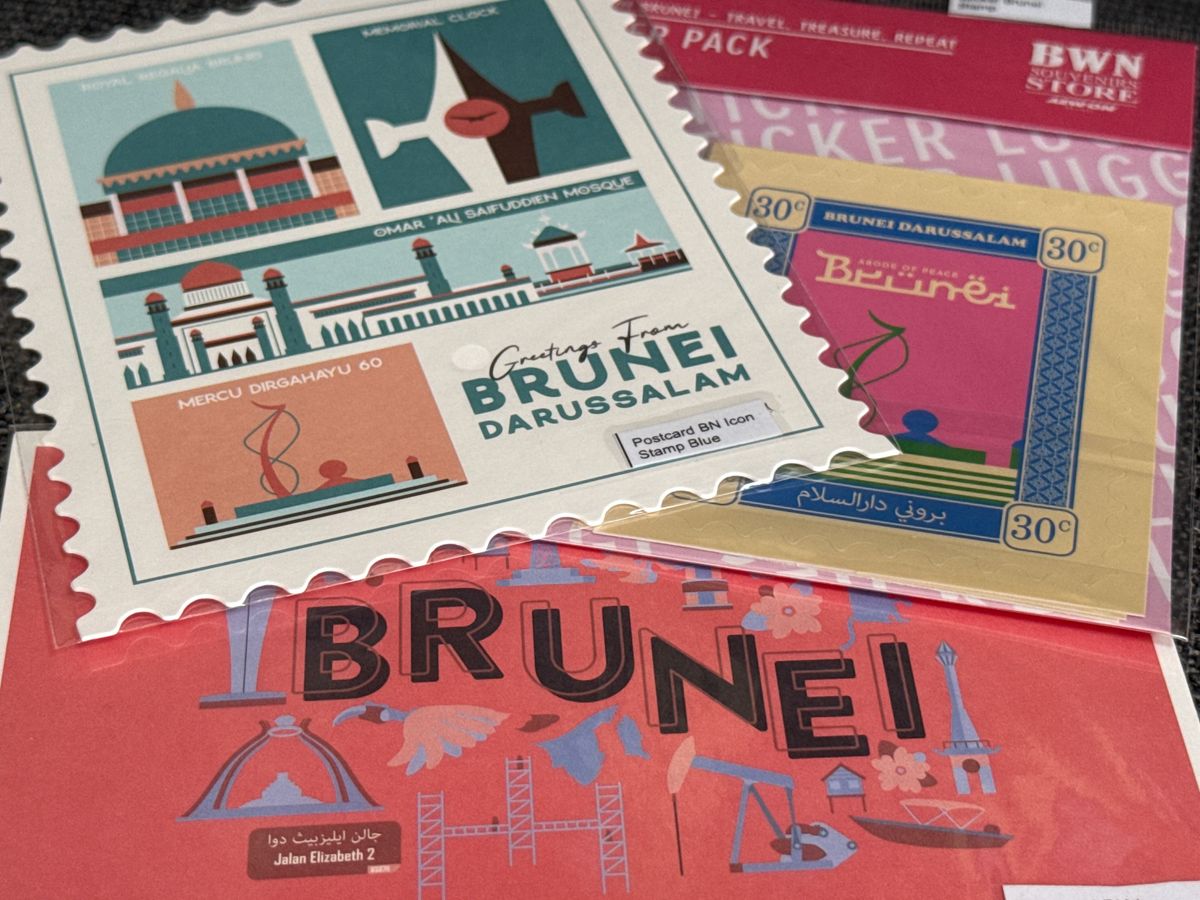 ナイトマーケットで10ドル使い切れなかった場合、次に行くデパートにも1〜2ドルで買えるブルネイのステッカーやポストカード、地下のスーパーには1〜2ドルで買えブルネイで有名なえびせんなども売っています。