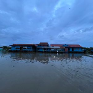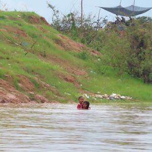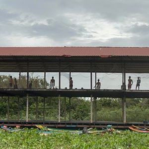 水上での生活を遠目から見ました。子ども達がボール遊びをしていたり、ハンモックでくつろいでいたり、