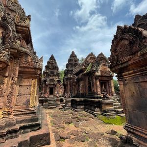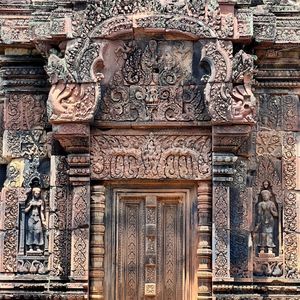 おっしゃる通り、このバンテアイスレイ寺院はこじんまりとしておりますが、彫刻はクメール美術の催行到達点に達した寺院といわれており堀の深い精緻な彫刻が見ものです。
