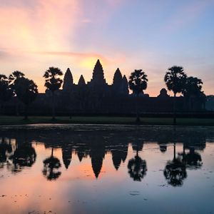 ラッキーなことに晴れていて朝早くアンコールワットについたときは満天の星空を見ることができました。真っ暗ななかを進むので個人で行くのは絶対難しいと思いました。ガイドさんが懐中電灯を照らしてあんないしてくださり、とてもきれいな朝日を見ることができました!遺跡の中でも写真スポットに超くわしくて、いい写真をたくさんとってくださいました。回る順番も効率がよく、12時にホテルに戻って休憩して、別のことができました。早起きは気合が必要ですが、おすすめです!