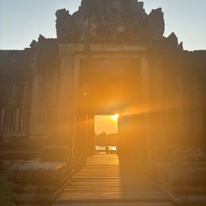 朝一雨が降っていたので、朝日鑑賞は諦めていましたが、運良く朝日とアンコールワットを鑑賞でき、感動的な体験でした。カンボジアの歴史的背景の説明を聞きながら遺跡巡りはとても奥深く勉強になりました。