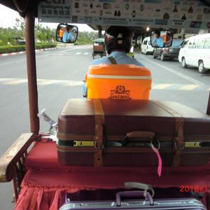空港ゲートの外まで案内され「ここで待ってて」みたいなジェスチャーで少し待機、数分後トゥクトゥクに乗って戻ってきてそれに乗り込みホテルへ出発。