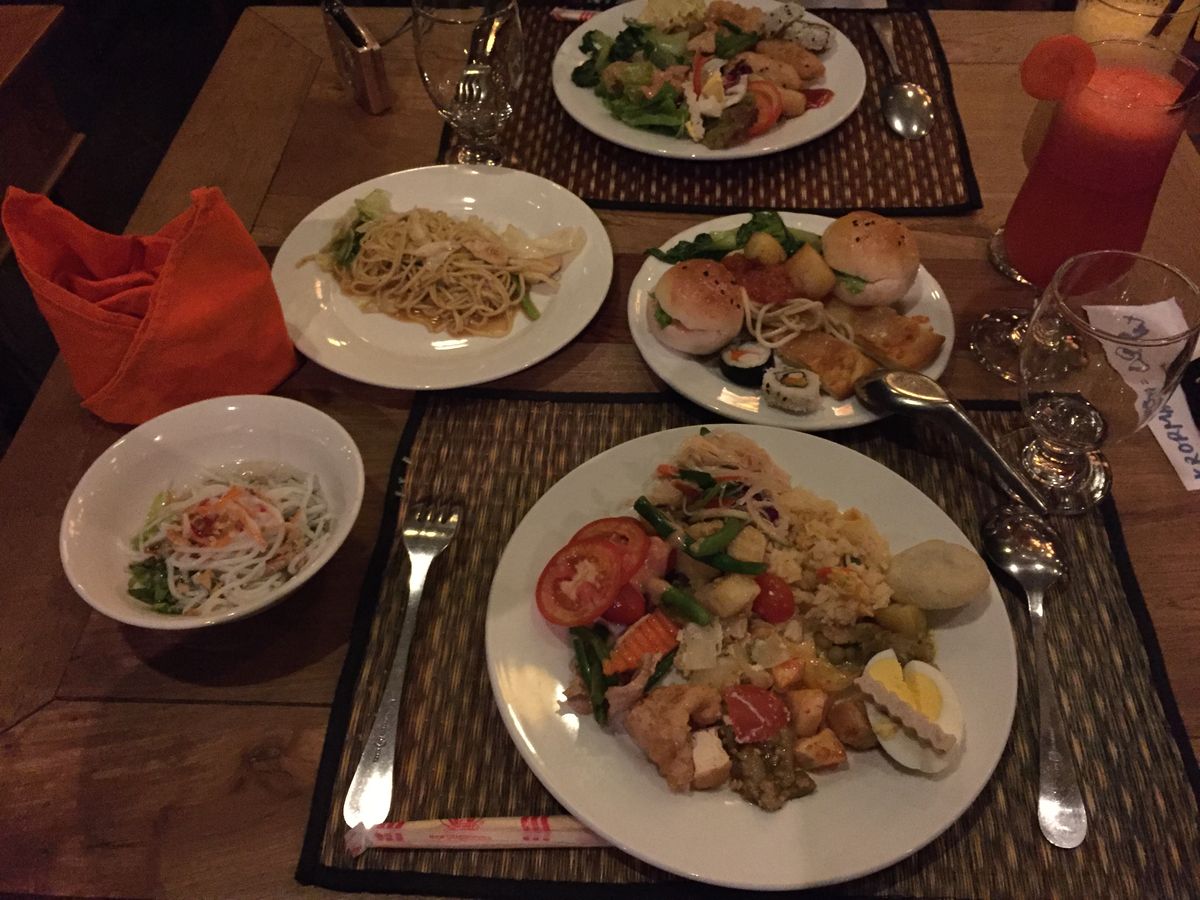 迎えのトゥクトゥクが10分遅刻してきたり、道が混雑していたこともあり、到着したころには、レストラン(ブュッフェ)は食事をとるための大行列。おまけに、料理がないものも多く(追加されるにはされますが、タイミングがゆっくり過ぎて、何もないお皿も沢山ありました)、残り少ない料理を取るために10分以上並びました。