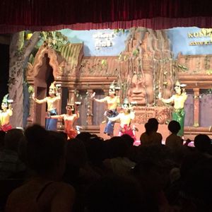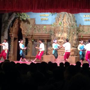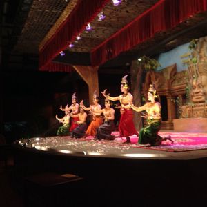 シェムリアップにはツアーで参加して、アプサラダンス+ディナーが付いていたが、もう一度見たくて申し込んだ。会場は広くてダンサーまでの距離はあったが、少しくせのある現地料理が苦手なひとには、バイキング形式はよい。値段も手頃で楽しめた。他の投稿者も書いているように、18:30頃には会場に入り、ゆっくり料理を取りにいったほうがよい。
