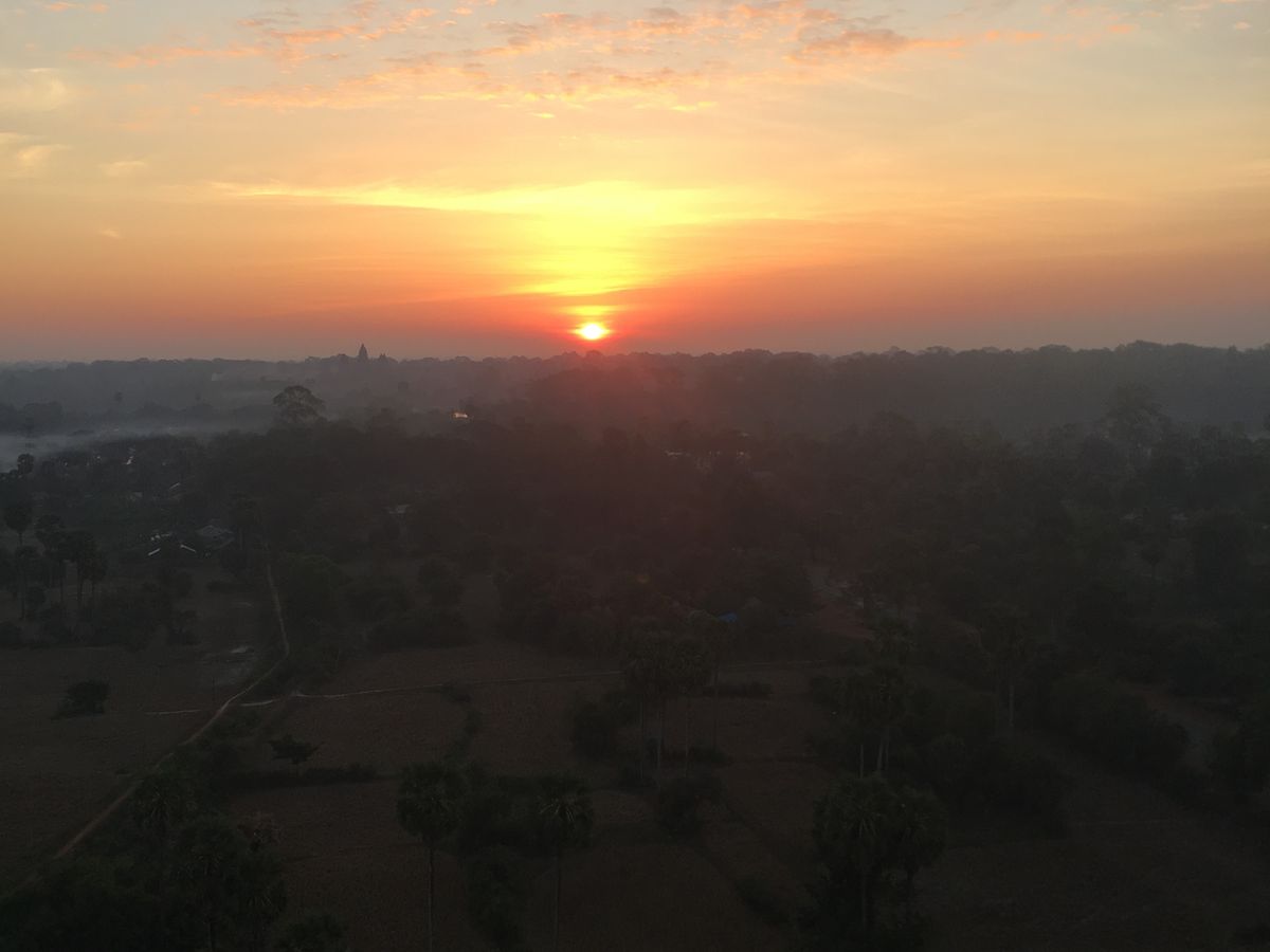 日の出の時間に合わせて乗せてもらえました。あいにくアンコールワットはかすんでいましたが朝日の出てくる瞬間を上空から見れて大満足でした。