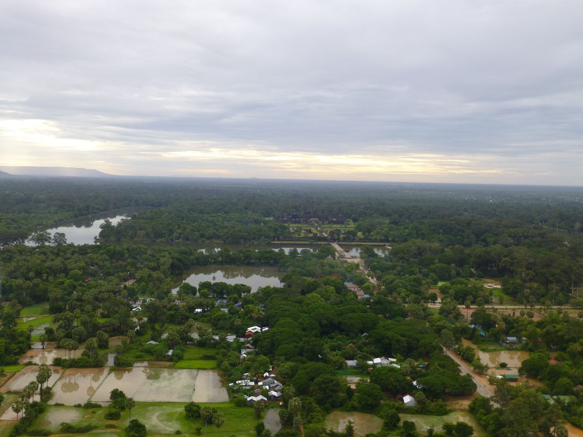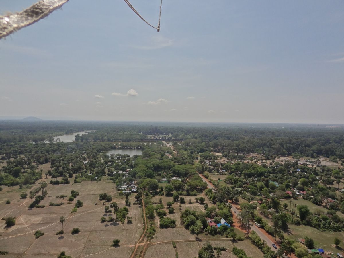 バルーン乗船位置の背中あたりにアンコールワットが見えてきます。