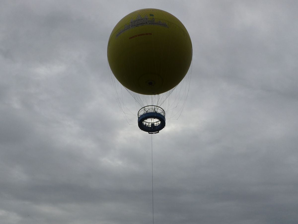 GWのシェムリアップ旅行時に参加しました。なんとなくは想像していたのですがアンコールワットから距離が2キロほどあるので目視ではそれほどアンコールワットははっきり見えません。仕方の無いことですがもっとアンコールワットに近ければ素敵な景色が見れるのにと思いました。ホテルからバルーン乗り場までの送迎はトゥクトゥクを選択。アンコールワットの入場券が必要ないツアーなので舗装の悪い道で結構揺れました。参加者がチケット持っている場合は舗装の良いアンコールワットエリアを通っても良いのではないかと思いました。