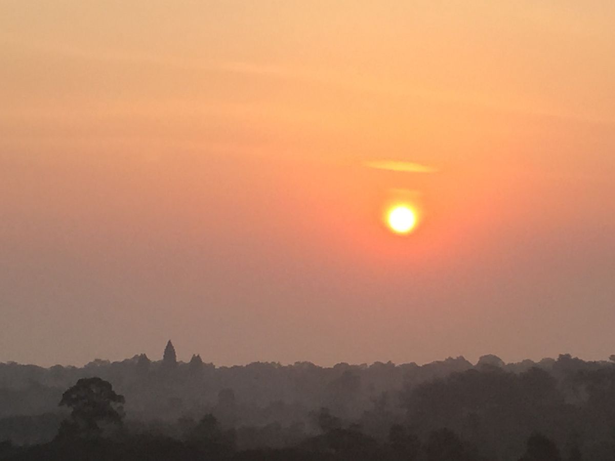 綺麗な写真をご投稿いただき誠にありがとうございます。また天候にも恵まれ朝日の写真がくっきり写っていますね。遠くにはトンレサップ湖でしょうか?湖のような姿が見えています。またのお越しをお待ち申し上げております。