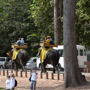 象に乗ってバイヨンをぐるりと。隣を通りすぎていくバスのはるか上にいます。途中、写真スポットで止まってくれたりして、充分楽しめました。