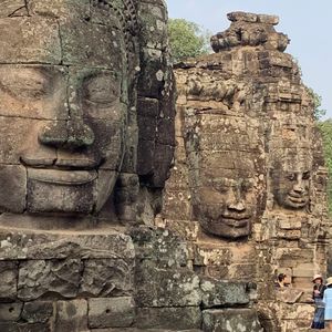 3Km四方のアンコール・トムの中に点在しているので歩いて回るのはかなり大変だと思いますし、トゥクトゥクを拾って歩けばツアー料金と大差無い気がします。