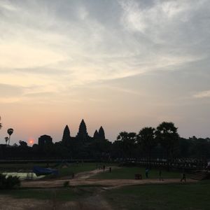朝日鑑賞ということで、まだ日が昇る前にアンコールワットに到着。街頭などは一切ないため、ガイドさんの懐中電灯を唯一の明かりとして遺跡に入ります。別日で日中にも行ったのですが、真っ暗な常態から、少しずつ太陽が昇り、シルエットとして浮かんでくる遺跡は、なんともいえぬ感動物でした。当日は曇りのため、サンライズを見ることはできませんでしたが、暗闇の遺跡に入るという体験が本当にいい思い出です。