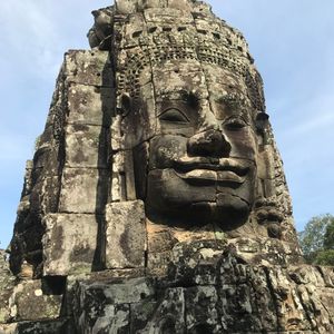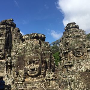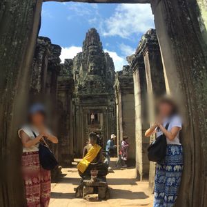 サンポさんは日本語が上手で、遺跡の説明がわかりやすく、私たちの会話の中でわかりにくい言葉を調べたり、スマホで「この日本語で合ってますか?」と確認するなど、とても熱心に日本語を勉強しているのだなぁと思いました。アンコールトムの大きさにびっくりしたのと、バイヨンの中に「京 唄子さんそっくりな顔がありますよ」と言われておもしろくて笑ってしまいました。アンコールトムの中を全部見ることが時間的に無理だと知って、今度はトムだけのツアーに参加してみたいと思いました。タプロームでは、木に遺跡が飲まれてしまっているのを間近でみれてよかったです。あっという間のツアーでした。