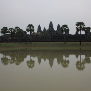 アンコールワットからの朝日に参加しました。夜明け前に駐車場からもくもくと鑑賞スポットを目指して歩きます。現地の方が、その日の丁度良い場所を教えてくださいました。結構な人数が見に来ていました。日が昇ってしまうとあっという間ですが、絵葉書のようでした。池に映る逆さアンコールワットも美しかった。