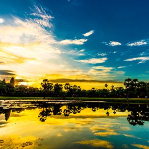 アンコールワットでの朝日鑑賞は、朝日で赤く染まった空と水面に映るアンコールワットをみることができる人気のツアーとなっております。