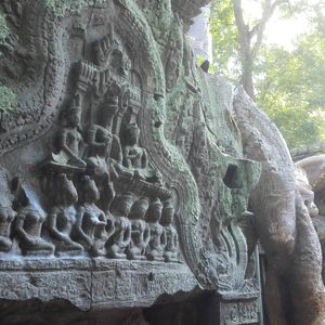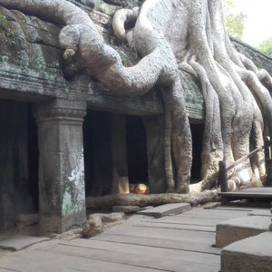 アンコールワットを堪能した後は、アンコールトムへ。時間はまだ8時台ですが、徐々に暑くなり、水の消費量が増える頃。アンコールトムはとても広いのですが、遺跡から遺跡の移動は車を使うこともあり、体力的にはまだまだ元気!バイヨン、タプロームと雰囲気の異なる2つの遺跡のほか、様々な場所を目に焼き付けることができました。