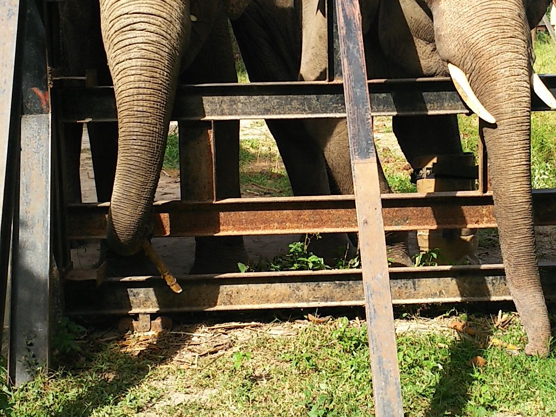 象には1ドルでさとうきびをあげることができます。
