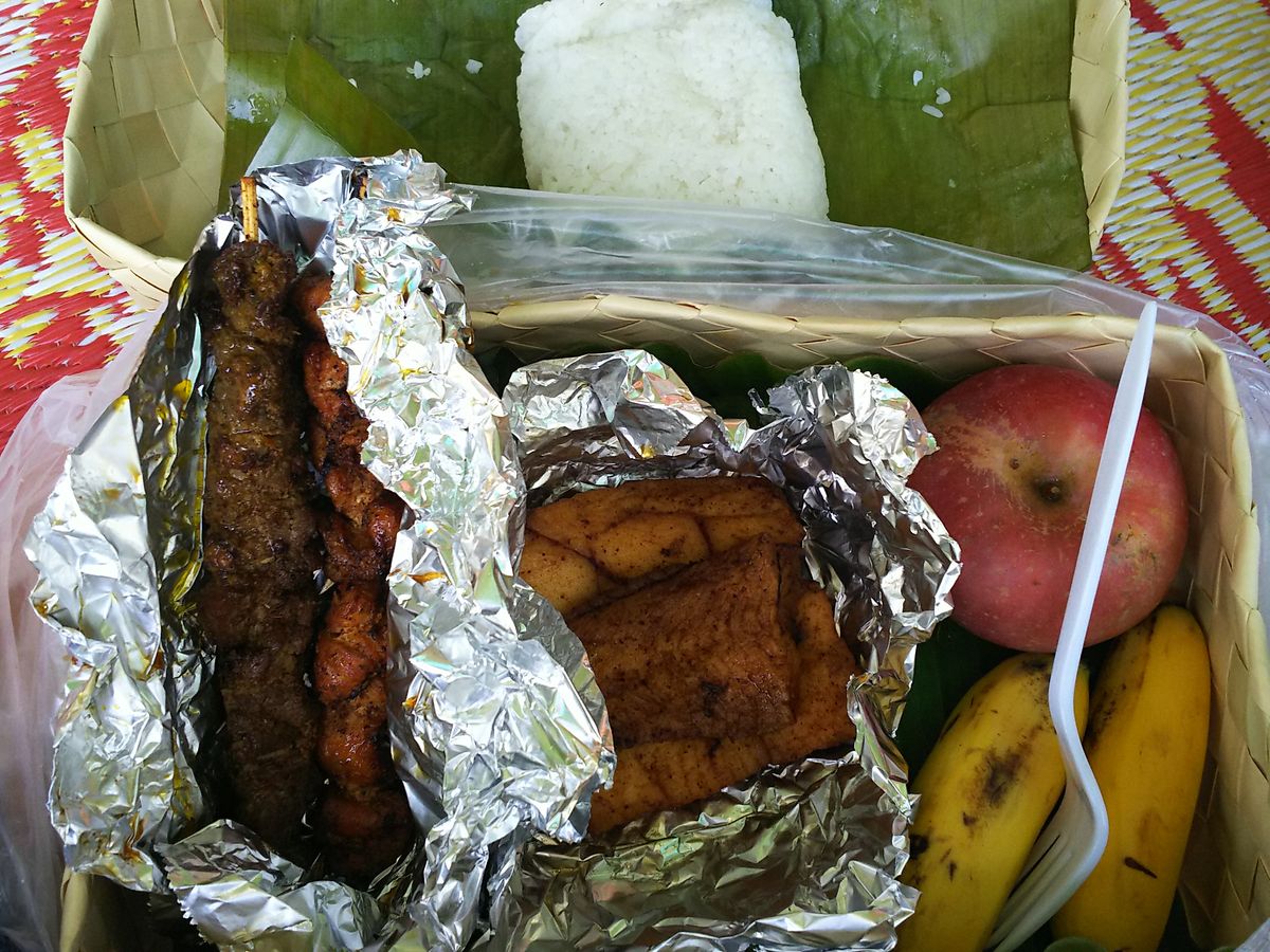 付いていたランチボックスは、焼き鳥、焼き魚、ご飯、果物でしたが、これがまた美味‼