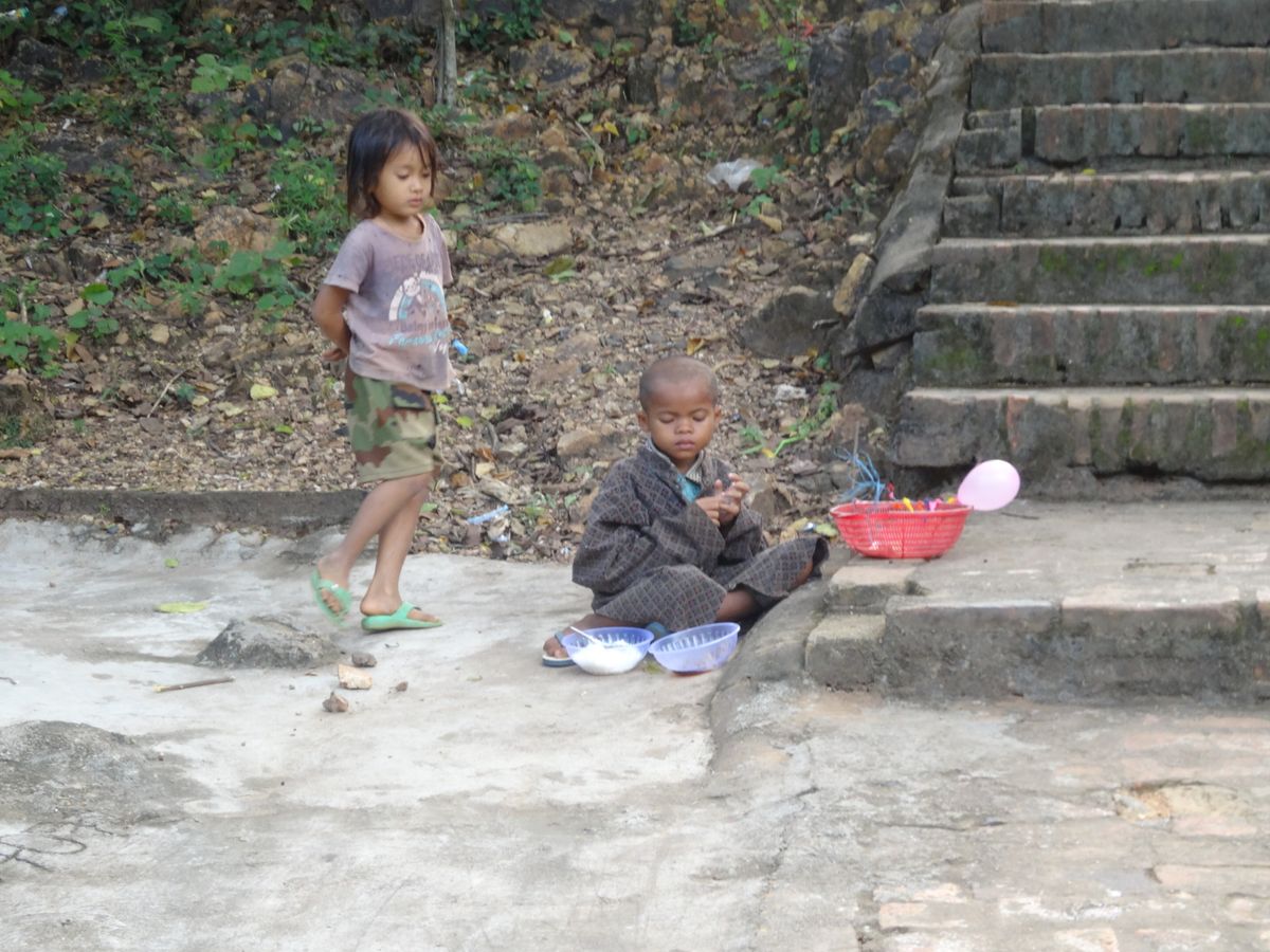 寺院の周りでは、物乞いや花売りがたくさん寄ってきます。貧しい集落が近くにあるそうです。