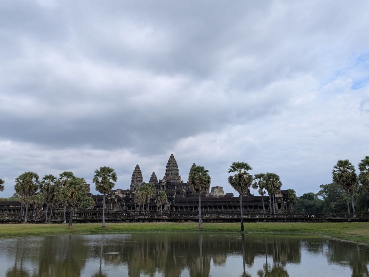 ただアンコールワットの朝日ツアーをつけたのですが、入場券を持っていたため当初の時間より遅めを提案されました。その結果、着いた時にはすでに多くの人がいて、池の一番前の列を取れませんでした。当初の時間で一番前を取れたかはわかりませんが、遅らせたことを後悔しました。