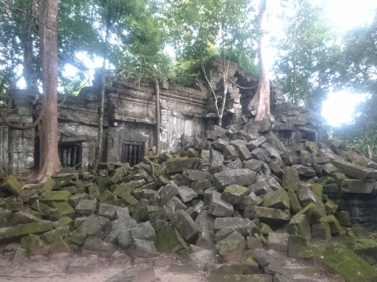 今日はアンコールワット初日出の鑑賞をしてそのままタプロームに向かい、昼間だと激混みの遺跡を半貸切状態で楽しんだ後、普通のツアーでは行かないマイナーな遺跡をいくつかとロリュオス遺跡群、オールドマーケットを巡り、丸一日走り回ってもらいました。