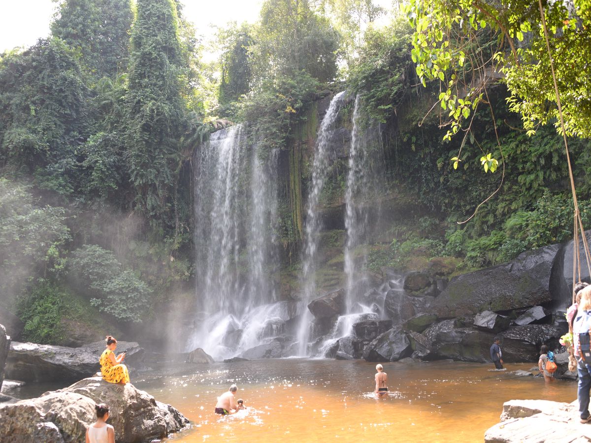 プノンクーレン+アンコールワット朝日に使用しましたが、クバールスピアンは、水が全くないとのことで、パスしました。プノンクーレンは午前中でないと登れないことに注意が必要です。下山も正午からでないと降りられません。プノンクーレンも水中遺跡が少しあります。涅槃像と滝。地元の方の聖地という感じです。ダートを登っていきますので、乗り心地は覚悟してください。