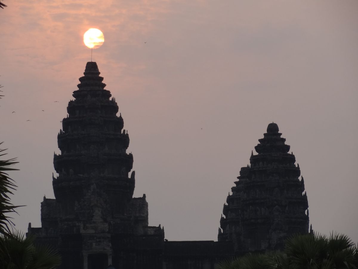 残念に思っていたら、ガイドのソカさんが、「大丈夫。今日は、ここに立てば、塔のてっぺんにかかる朝日が見えます」と、その場所に連れていってくれました。