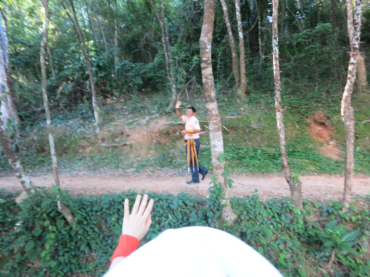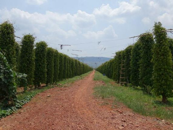 帰路途中、コショウ畑に立ち寄ってくださり、生まれて初めてコショウ畑を見学しました。コショウの木の成長の説明を受け、10年経ったコショウの木から種を収穫し、日干しに3日掛けると、ワタシたちが馴染んでいる黒胡椒が出来上がる工程を見学できたのは、思いがけない感激体験でした。ありがとうございます!