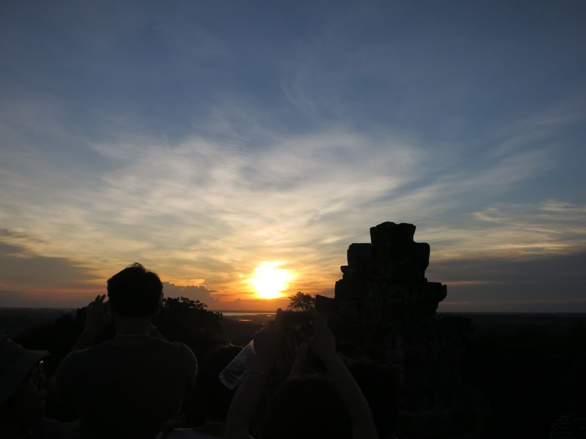 朝日を鑑賞→ホテルに戻り朝食→アンコールトム→タプローム→昼食→バンテアイクディ→アンコールワット→プノンバケンで象乗り+夕日鑑賞