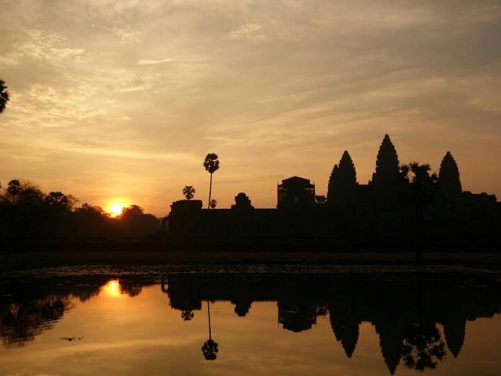 アンコール・ワットの朝日見学、アンコール・トム、タ・プロームツアーをお願いしました。アンコール・ワットの朝日は、日の出直前の紫色がかった朝焼けが朝日以上にキレイで感激しました。