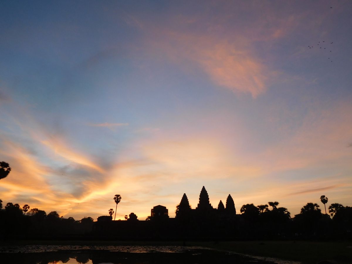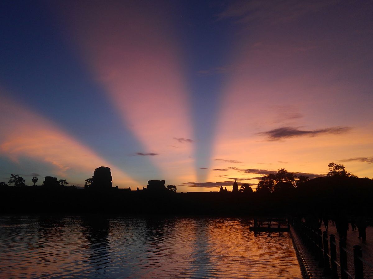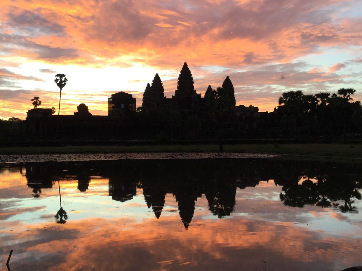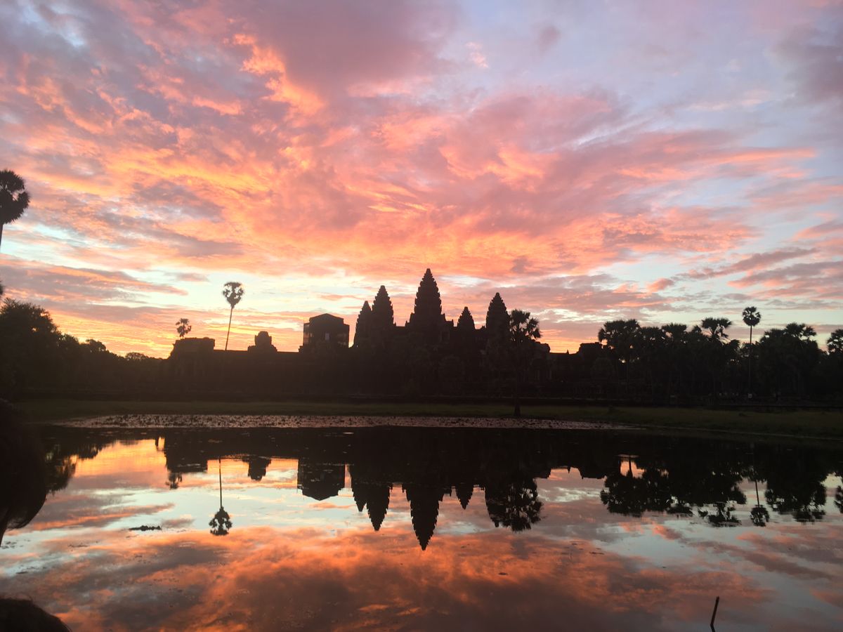 カンボジア旅行で定番のアンコールワット。そこで見る朝日は一味違います。美しい。この一言に限ります。おすすめです。