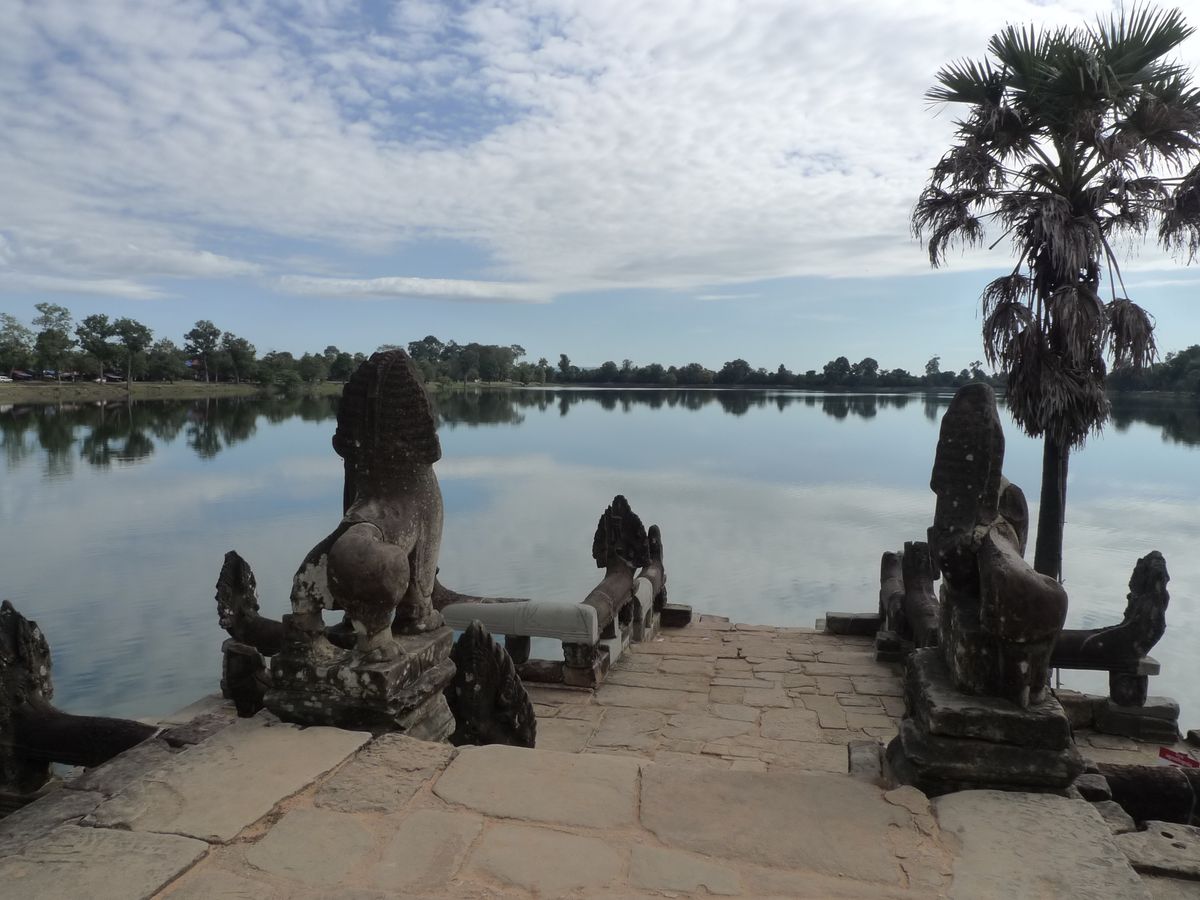 ニャックボアンは池の中に中央祠堂がある寺院で、池の中を参道が通っていて、大変美しい。