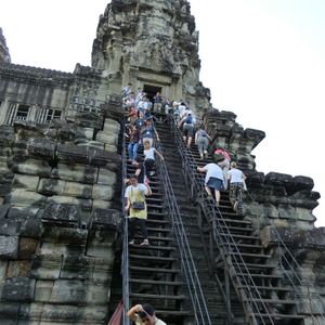 14時頃アンコールワットへ着きました。アンコールワットはトムとは違い木々もなく火を遮るものがないため、息苦しいほど暑かったです。アンコールワットは西をむいているため、午前中だと逆光になってしまうということもあり、やはりたくさんの人がいました。さかさアンコールワットも綺麗にとれ、第一回廊、第二回廊と回りましたが、プレループに早めに行かなければならないので、第三回廊は次の日に自分たちで来ることに決め、その日は第三回廊を見ずにプレループへ向かいました。第三回廊に登るための列は、次の日の朝来た時もそうでしたが、この日も60分待ちでした。