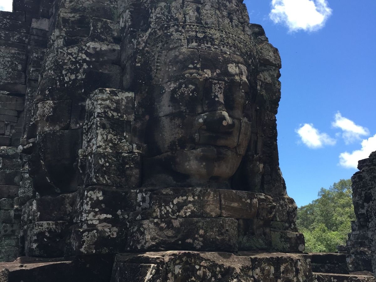 遺跡巡りは初めてだったのですが、日本語のガイドさんの話しが学びの宝庫😄遺跡の顔が取れてるのは盗まれたからだとか、肖像画に描かれた当時の戦いの意味を解説してくれたり、シェムリアップからはタイの方が近い、元々はヒンズー教の寺院として建てられたが、今は仏教となっているなどとても勉強になりました。