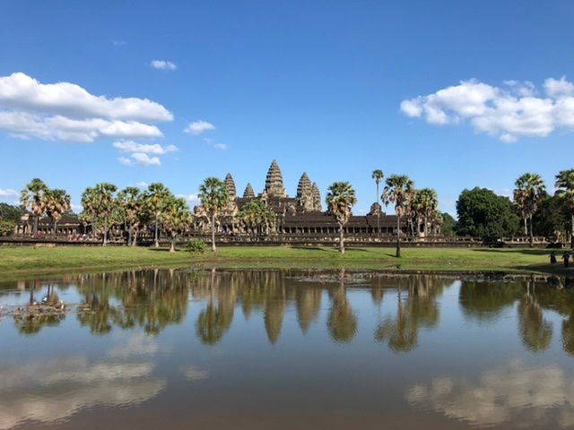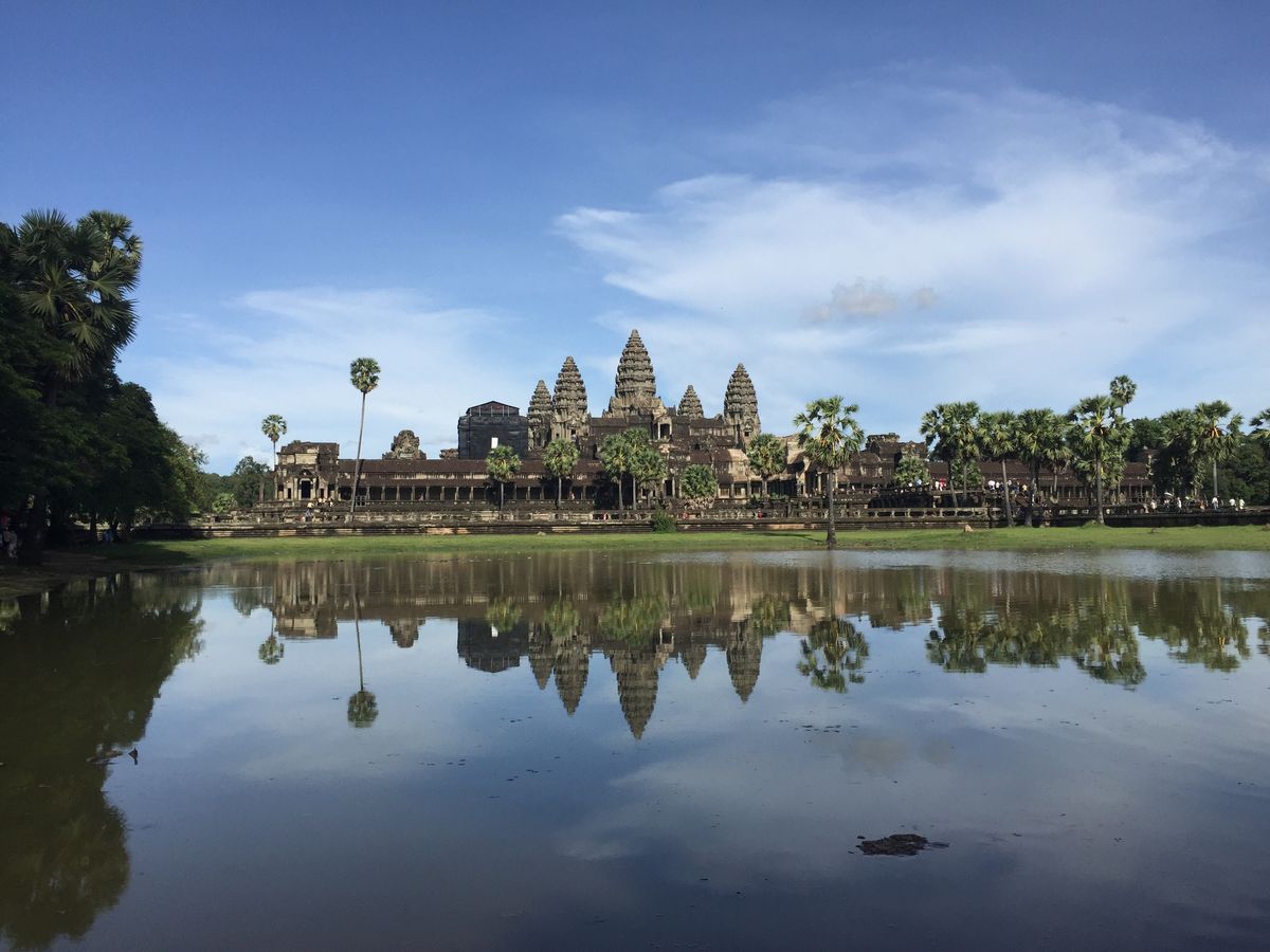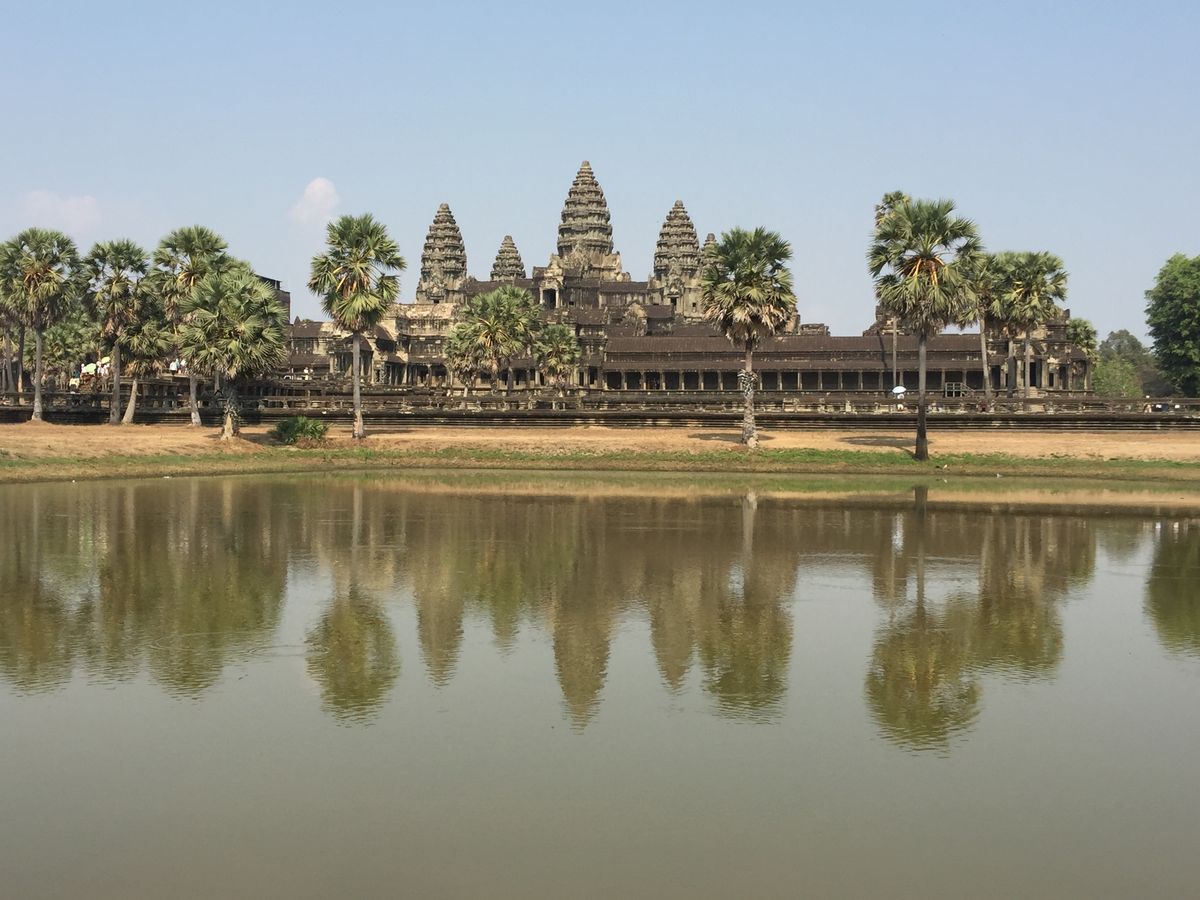 雨が降らないか心配でしたが少し曇ったくらいでアンコールワット遺跡をまわることができました。アンコールトムとアンコールワットに行き、とても綺麗な写真もとれ大満足でした。中でも印象的だったスポットはやはり池に写るアンコールワットの反面像です。本などで見たことはありますが実際に見るのでは全くちがう感動があります。また、カンボジア人のガイドさんもよかったです。良い写真スポットを熟知しているのとアンコールワットの歴史も説明してくれたので満足でした。日本語も上手だったので色んな質問に答えてもらうことがでしました。夕飯は現地のダンスを見れるレストランで衣装もダンスも綺麗でした。ダンスは何種類か見ることができ最後は踊り子さんと写真もとれたので良い記念になりました。宿も日本人スタッフがいるため町の色んな事を聞けたので不安なく滞在できました。宿の周辺も飲食店が近くにあるので食べたり飲んだりもできます。観光の際は日焼けと虫さされ対策は必須だと感じました。