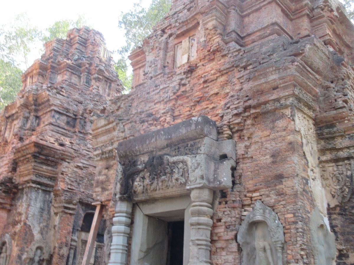 アンコールの主要遺跡よりも古い時代の遺跡ですが、レンガ主体、バコン寺院のほうは砂岩が使用されておりますがアンコールワットなどと比較しても石の大きさなどもそろっており、石もふんだんに使用できた時代だったんだな、というのがわかる遺跡です。